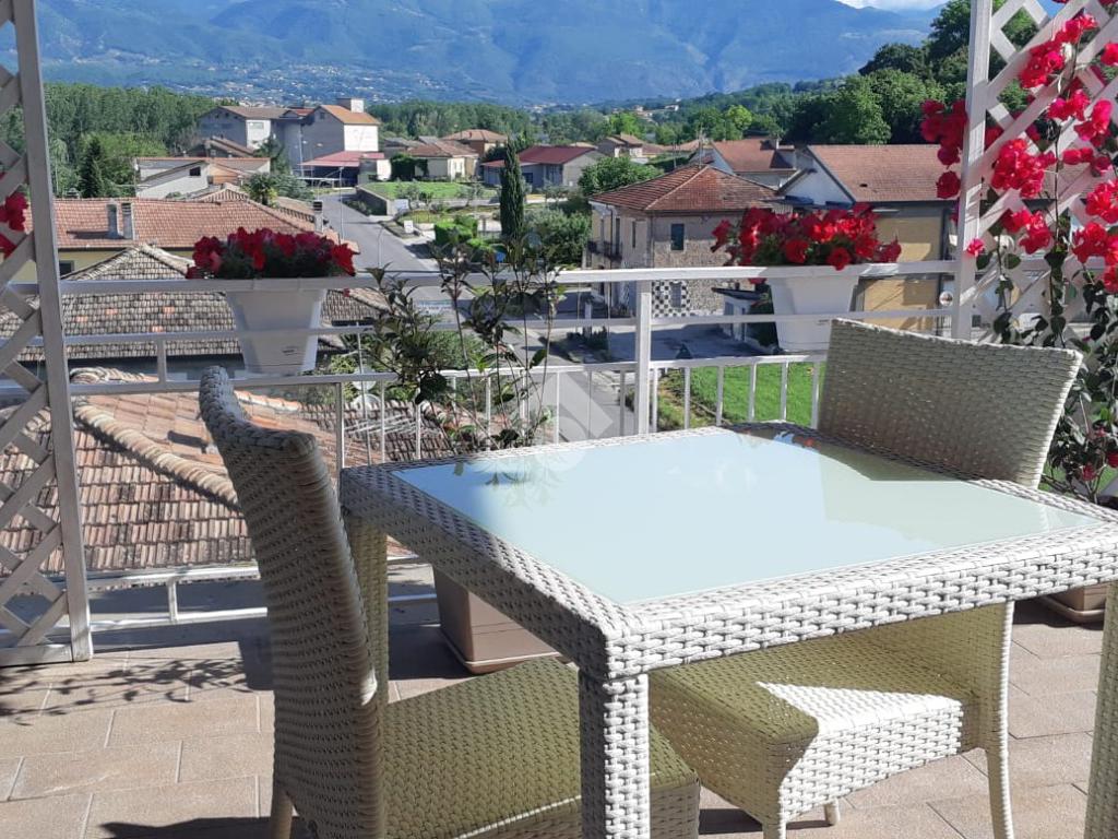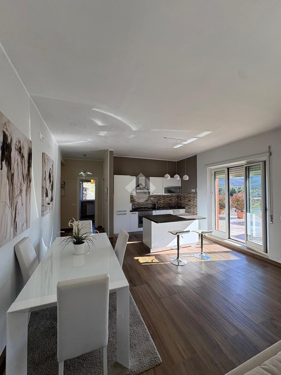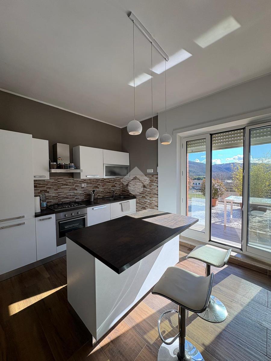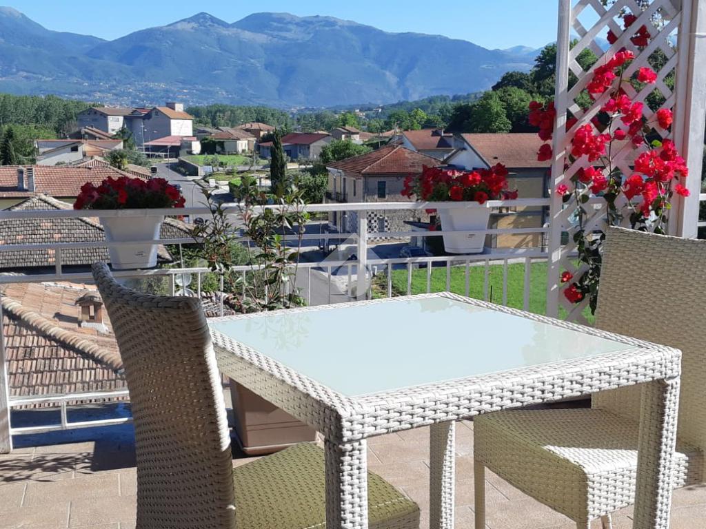 Appartamento in vendita ad Arpino, zona Scaffa, situato al terzo piano, completamente ristrutturato. Questa abitazione offre luminosa zona living open space con cucina e soggiorno dotati di caminetto a pellet, aria condizionata e pompa di calore, che comunicano con il terrazzo di circa 80 mq con vista. L'immobile si compone di doppi servizi inoltre, entrando nella zona notte troviamo: una stufa a pellet, tre ampie camere da letto di cui due sono dotate di aria condizionata e pompa di calore e una di esse dispone di un terrazzino di circa 40 mq, abbiamo un'altra camera adibita a palestra ma che può essere utilizzata come piccola cameretta o come ripostiglio. L'appartamento gode di una buona luminosità naturale e di una vista panoramica sui dintorni, rappresenta un'opportunità interessante per chi desidera vivere in un contesto tranquillo, senza rinunciare alla comodità dei servizi offerti dal centro cittadino.