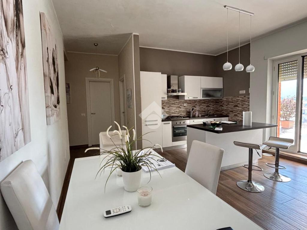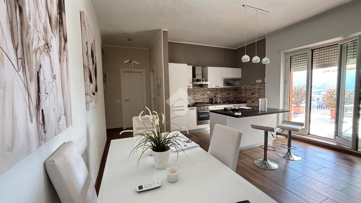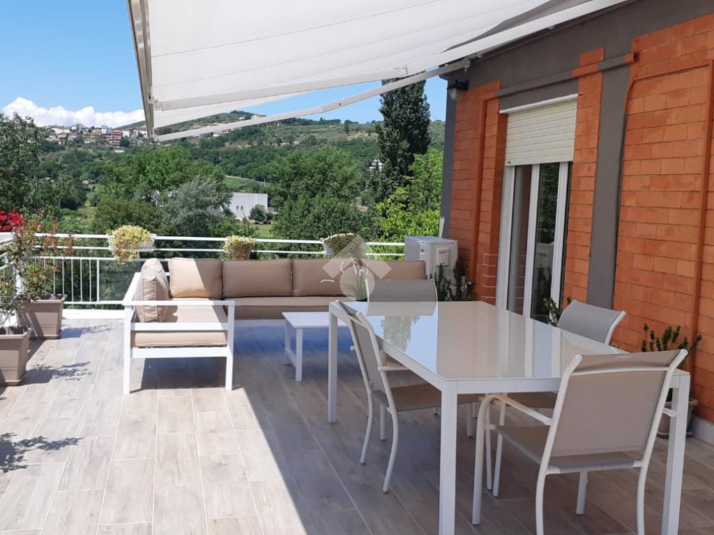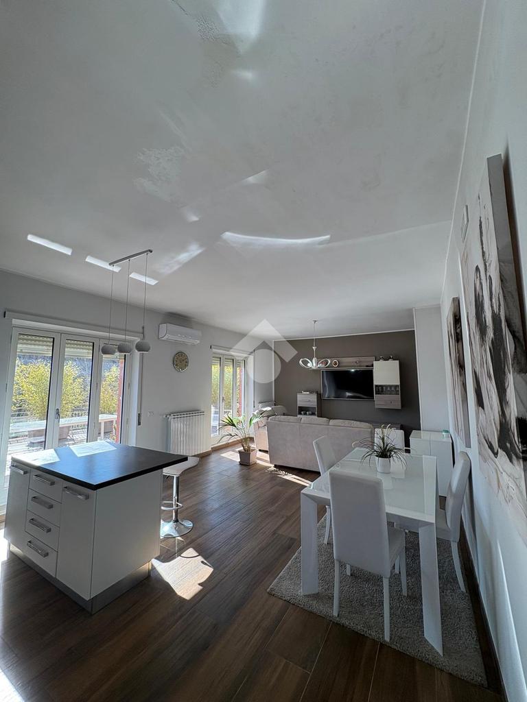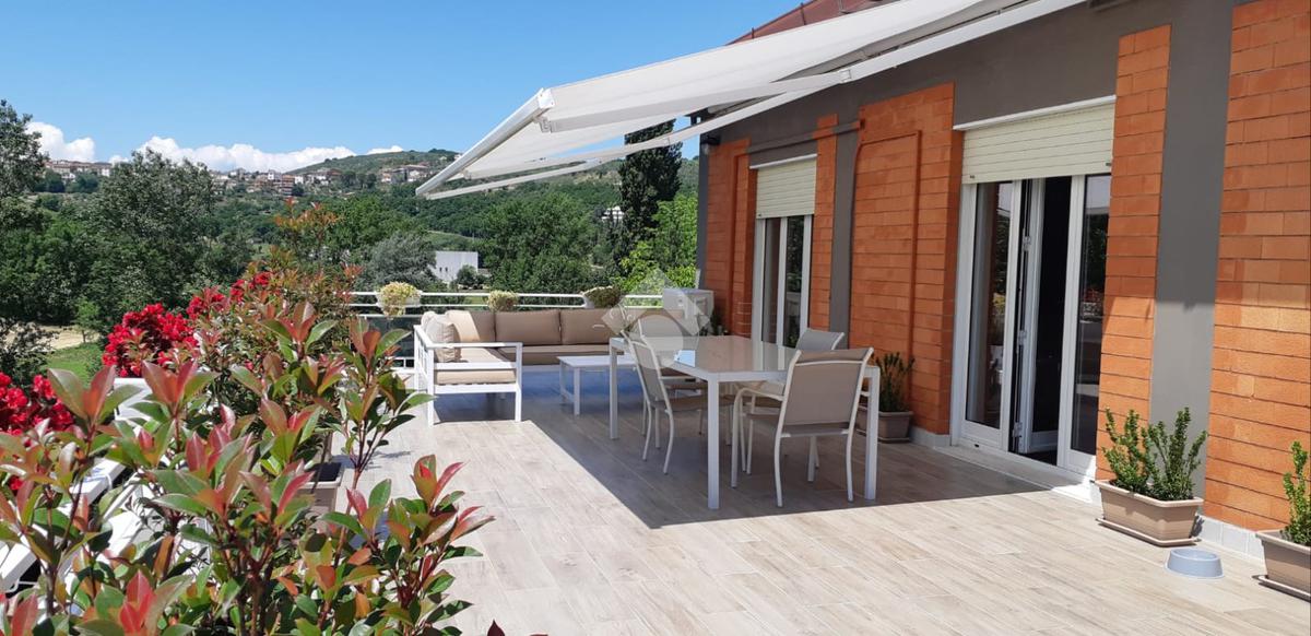 Appartamento in vendita ad Arpino, zona Scaffa, situato al terzo piano, completamente ristrutturato. Questa abitazione offre luminosa zona living open space con cucina e soggiorno dotati di caminetto a pellet, aria condizionata e pompa di calore, che comunicano con il terrazzo di circa 80 mq con vista. L'immobile si compone di doppi servizi inoltre, entrando nella zona notte troviamo: una stufa a pellet, tre ampie camere da letto di cui due sono dotate di aria condizionata e pompa di calore e una di esse dispone di un terrazzino di circa 40 mq, abbiamo un'altra camera adibita a palestra ma che può essere utilizzata come piccola cameretta o come ripostiglio. L'appartamento gode di una buona luminosità naturale e di una vista panoramica sui dintorni, rappresenta un'opportunità interessante per chi desidera vivere in un contesto tranquillo, senza rinunciare alla comodità dei servizi offerti dal centro cittadino.